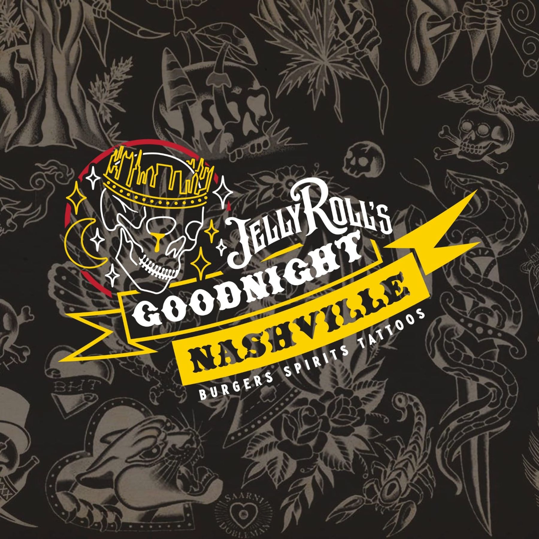 Goodnight Nashville - Jelly Roll’s love letter to his hometown and the lively music scene. Nestled right on Broadway, the rustic, tattoo-themed bar spans four floors and features the highest rooftop in Music City. Dive into Nashville’s vibe with live music, tasty bites, and jaw-dropping skyline views from up top.