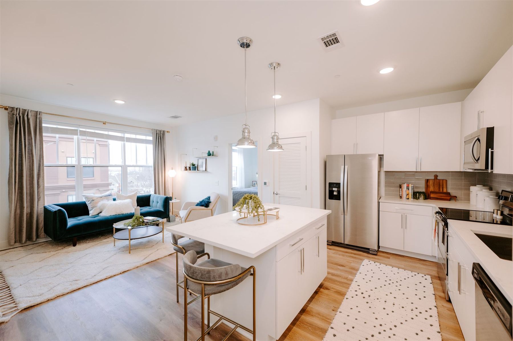 The new studio, 1- and 2-bedroom apartments for rent at LC SoBro feature high-end finishes, bright and open layouts, and available city views of the Downtown Nashville skyline. With walkability to the SoBro neighborhood, entertainment and dining along Broadway, and events and activities at Riverfront Park, these pet-friendly apartment homes are conveniently situated in the heart of it all. The LC SoBro community also offers its residents access to an on-site restaurant and bar, wellness space, two elevated outdoor terraces with city views, a rooftop pool and courtyard, and available private parking. Experience all that urban living has to offer at LC SoBro in Downtown Nashville.