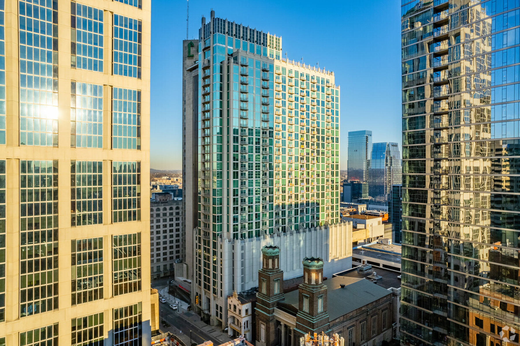 Towering 31-stories above Nashville's central business district and just steps from famous Printer's Alley, Ryman Auditorium, and Lower Broadway's entertainment district, the Viridian Condominiums lay claim as the first high-rise built in downtown Nashville. Lifestyle amenities include rooftop pool, sundeck, 24/7 concierge, clubroom lounge, daily coffee service, 1gb internet, fitness center, onsite grocery store and unrivaled walkability!