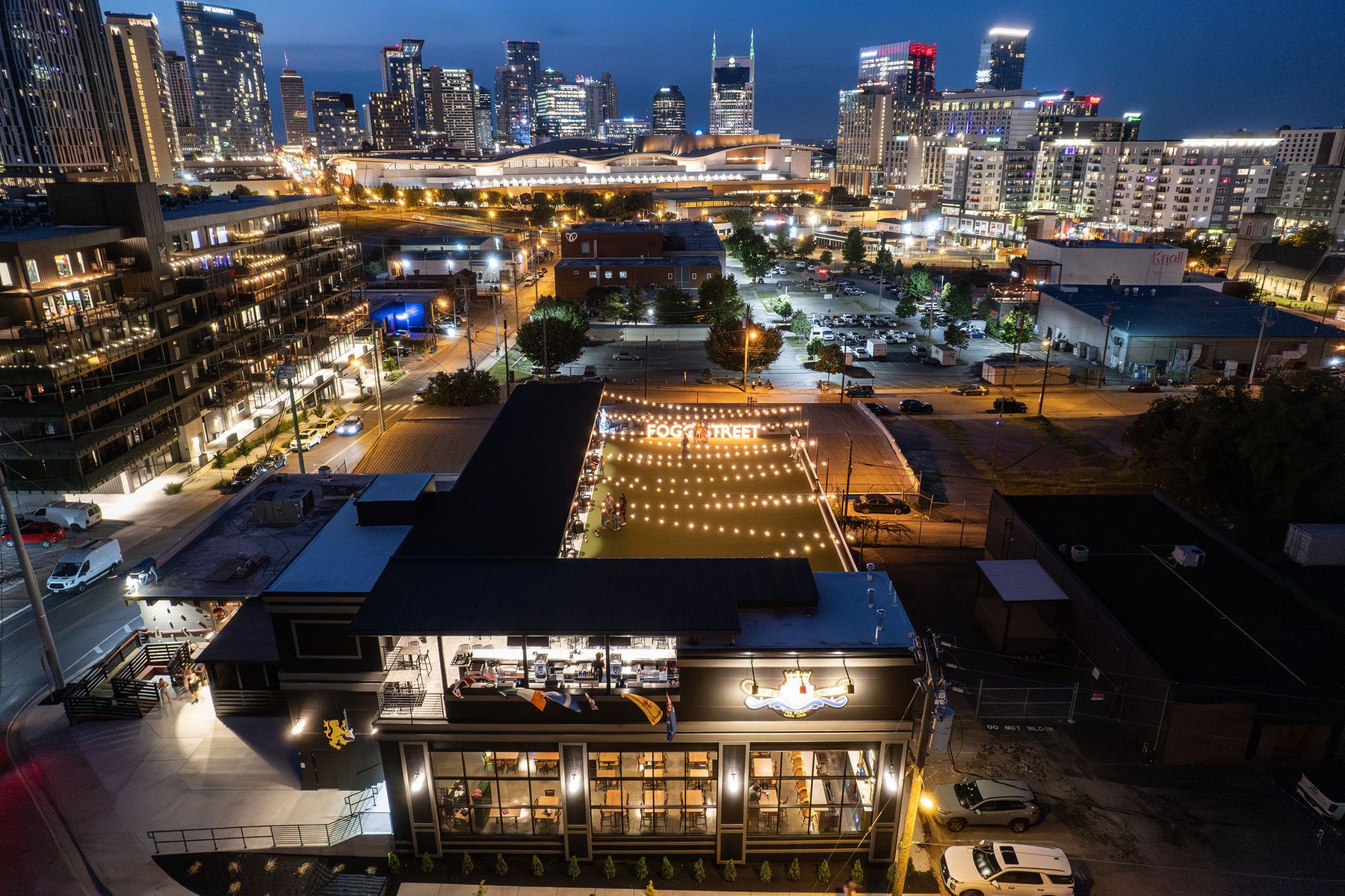 Fogg Street Lawn Club offers multiple levels of entertainment, boasting an 8000 sqft rooftop pub with and amazing view of the Nashville skyline and a 2,500-square-foot indoor soccer and rugby pub where you can enjoy a British-inspired entrée with your favorite pint or whiskey while cheering on your favorite club.