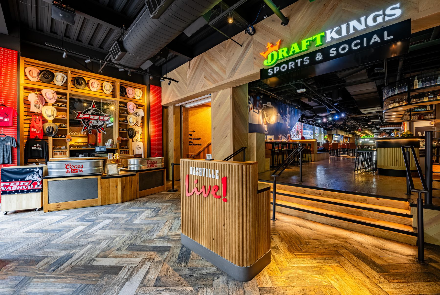 Nashville Live! features nationally acclaimed venues like DraftKings Sports & Social, PBR Cowboy Bar, and AVA Rooftop Bar, with more to come.